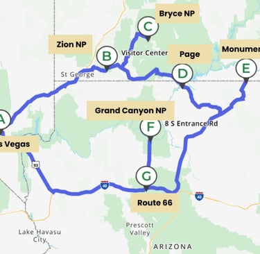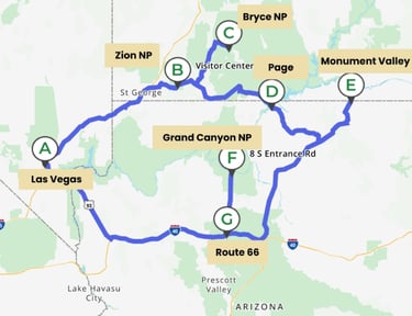 Las Vegas / Springdale / Bryce City (env. 430 km)